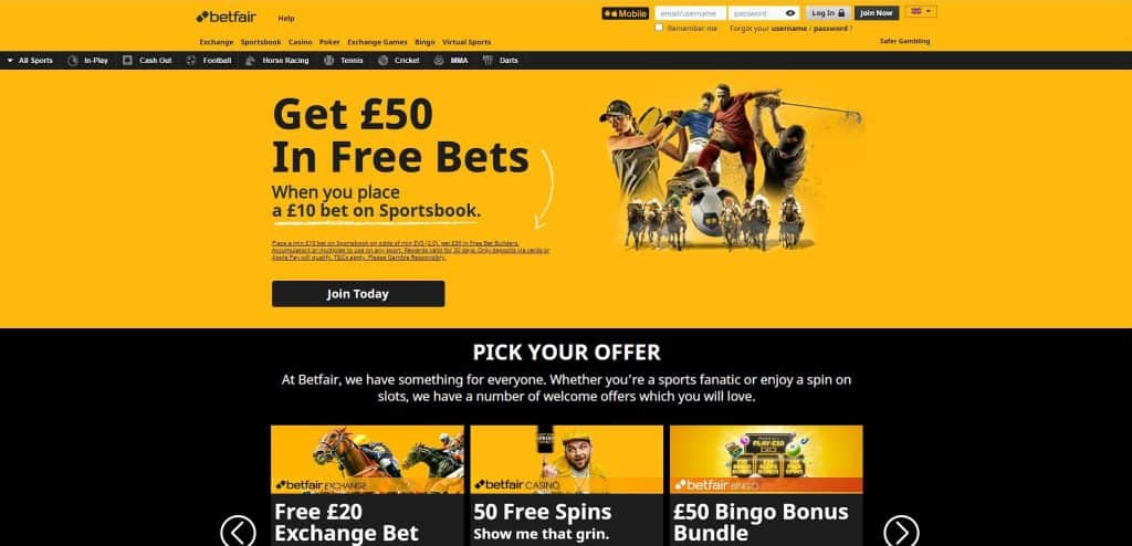 A few UK betting sites even provide £50 free bets. These tend to require a minimum bet of £10. Betfred gives users £50 in free bets for a £10 wager, whereas Betfair has a £50 free bet offer for a £10 bet placed on one of its sportsbooks.